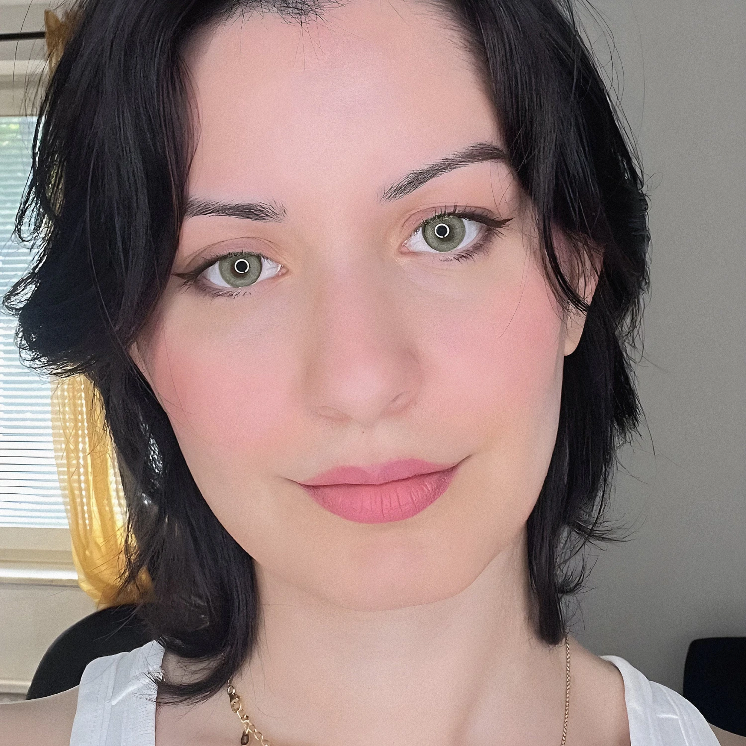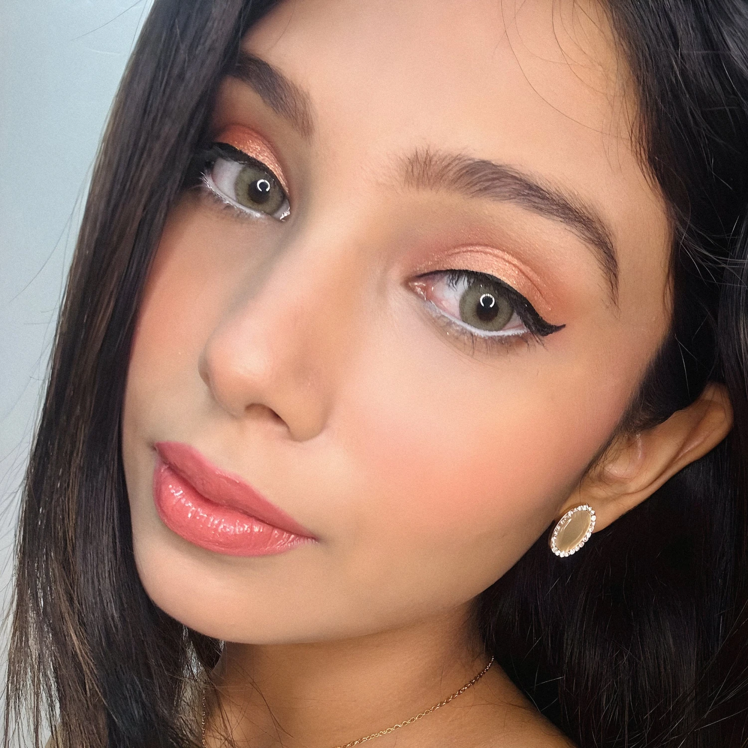 A very natural Greenish brown colour with a tinge of deep yellow. It has a light limbal ring on the outer edges, which gives it a sharper look & makes the eyes look bigger & enhanced.