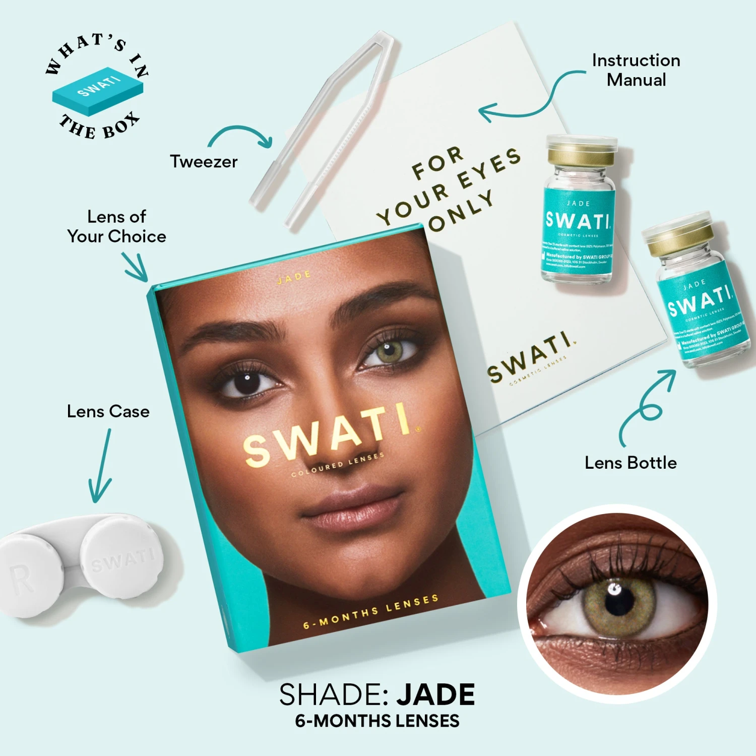 A very natural greenish-brown colour with a tinge of deep yellow. It has a light limbal ring on the outer edges, which gives it a sharper look & makes the eyes look bigger & enhanced.